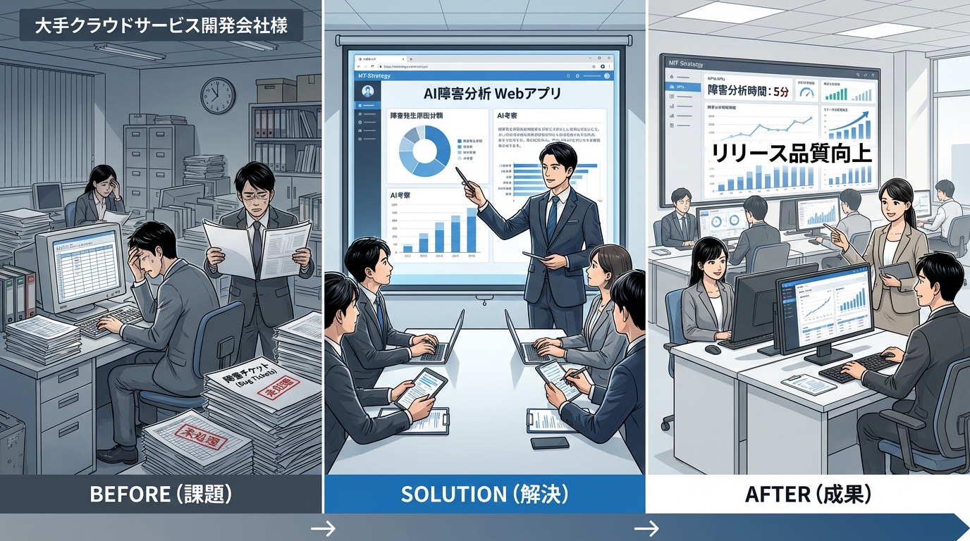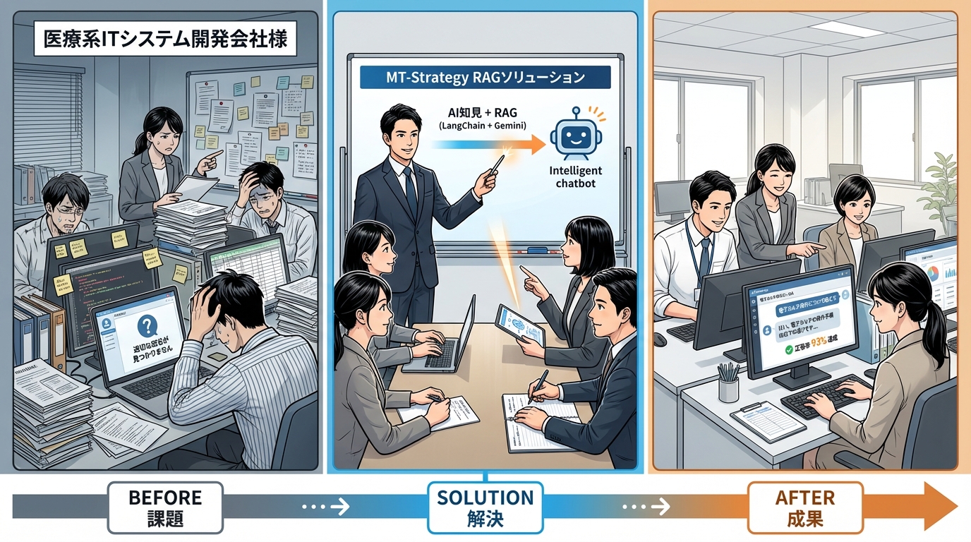 プロジェクトマネジメントおよび開発プロセスに対し、生成AIを活用したAIエージェントのご提案および実装を行うことにより、有識者ボトルネックの解消や作業効率化、作業品質向上を実現いたします。