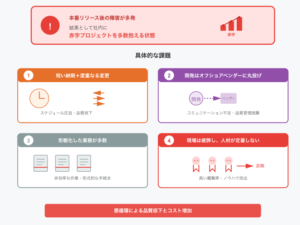 自社で開発する製品について本番リリース後の障害が多発しており、結果として社内に赤字プロジェクトを多数抱える状態になっていた。